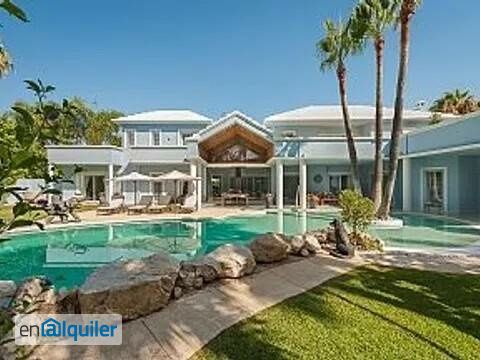 Situada en zona residencial en Guadalmina Baja , totalmente aislada, y privada con fácil acceso a la playa a pie .Con líneas contemporáneas suaves y tonos celestes inspirados del chic de Miami, cuenta con interiores muy luminosos e increíbles espacios exteriores, de la cual la pieza central es sin duda la amplia piscina forma libre con rocallas, cascada e isla con palmeras.La piscina tiene un acceso en pendiente con una gran zona poco profunda, ideal para niños o personas que no saben nadar, que baja hasta 1,8 m.En muchas villas, la piscina parece ser un detalle; en Casa Miami es la atracción principal.Aparte de la piscina, la casa tiene: 6 habitaciones, comedores exteriores e interiores, 2 salas de estar abiertas, gigante cocina americana nueva, sala de desayuno,habitación familiar, salón exterior amplio y sombreado, lavadero, gimnasio grande con gran variedad de equipo, parking para 6/7 coches y gran piano