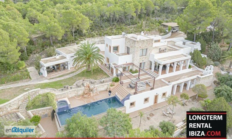 ANNUAL RENTAL - SAN JUAN DE LA BRITJA. Incredible villa located on one of the most desired areas of the island, with beautiful sea view to enjoy the best sunsets that the island offers. This villa is composed with a main house and two separated apartments and a land of 16.000 m2. The Main House Entering the house to the right we find a beautiful interior fountain with water turtles, a spacious living room with glassed windows to enjoy the natural light, fireplace and a fully furnished kitchen. The suite room is upstairs with walking dressing room, two private terraces with views to the valley and the sea, private bathroom with jacuzzi and views to the sea. On the ground floor we have three bedrooms and two bathrooms, one with jacuzzi. One extra room is used as storage. The Entrance Apartment This apartment has two bedrooms and one bathroom, opened kitchen connected with the living room that looks to a private garden. The terrace is covered and with different chill areas. The Under the Villa Apartment This apartment is located under the main house, can be accessed from the main entrance or from the pool garden. This apartment has two bedrooms, one en suite bedroom and a second room and a bathroom, spacious living room with fully furnished kitchen and a private covered terrace, the terrace has a chill out and different under trees areas. On the outside areas we have a private garage that fits two cars, another covered garage, barbecue area with views to the pool. Incredible villa for a family who loves to enjoy the sound of the nature and enjoy incredible sunsets with a sea view. Schedule your viewing with your agent bellow.