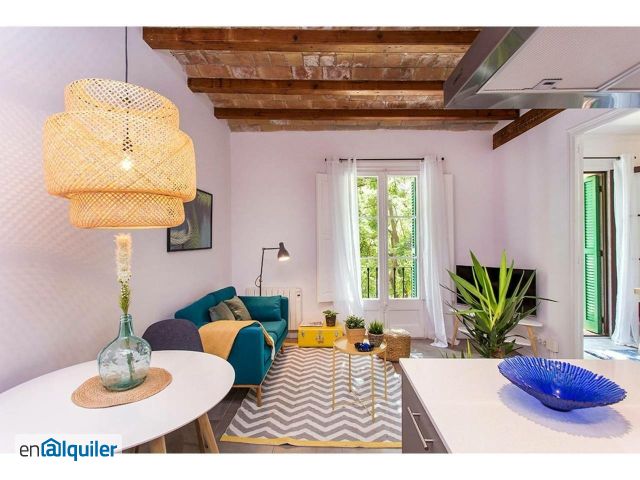 Delightful 2 bedroom apartment located in central part of Barcelona, near famous Sant Antoni market and walking distance to Pl. Catalunya. It is fully furnished and equipped. Apartment has 1 bedroom with double bed and access to lovely balcony to enjoy some sun or meals outside, open space kitchen, living room with comfortable sofa, TV and nice small balcony. The second bedroom is fitted with double bed and desk and also has small balcony. Bills are included up to 150 eur per months