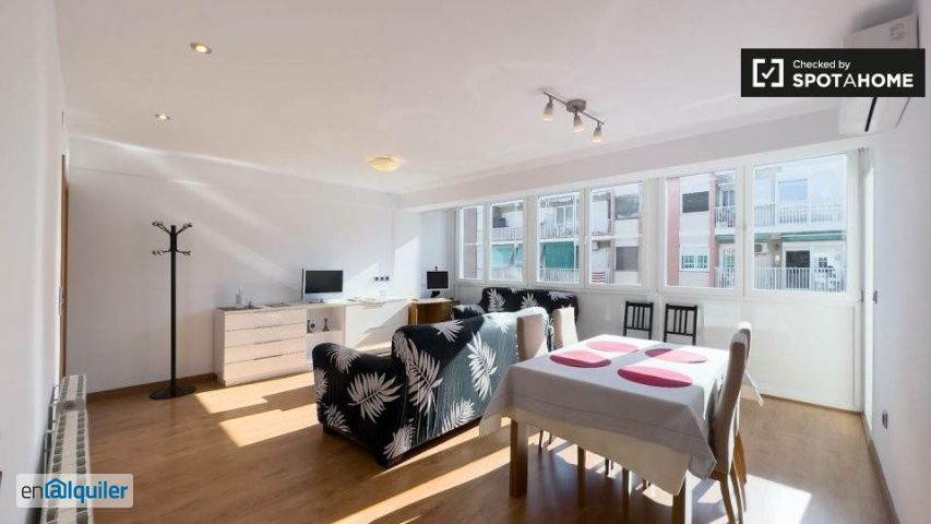 Este moderno apartamento de 4 dormitorios en Granvia Sud está completamente amueblado y cuenta con cocina equipada con lavavajillas y horno, calefacción central y balcón. Para su comodidad, los gastos de luz, gas, agua y wifi están incluidos. No se permite fumar ni traer mascotas, lo que garantiza un ambiente limpio y tranquilo. Spotahome ha revisado la calidad y autenticidad de la propiedad. Granvia Sud es un barrio vibrante en L'Hospitalet de Llobregat, Barcelona. La estación de metro Ciudad de la Justicia está muy cerca. Entre las opciones gastronómicas locales se incluyen Origen Fusion Bar y Lepanto Restaurant, ambos a un corto paseo, mientras que el supermercado Condis El Teu Súper ofrece la posibilidad de comprar comestibles. Explore esta animada zona fácilmente gracias a sus excelentes conexiones de transporte.
