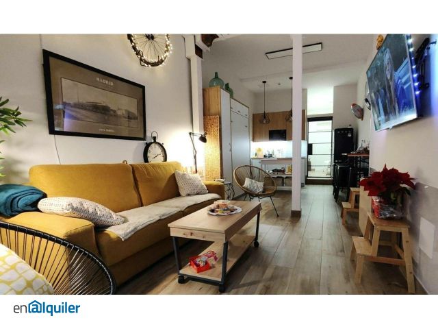iRent Madrid alquila piso de una habitación, totalmente reformado, en Lavapiés. El piso, de 52 metros, consta de un amplio salón comedor, cocina integrada, dormitorio y baño. En planta baja, con acceso directo desde la calle. A su entrada, encontramos el salón, con cómoda y amplio sofá cama, sillones, mesa de centro y mesa comedor extensible así como Smart TV Ambilight y aire acondicionado frío/calor. A continuación, zona abierta, con mesa elevada, ideal para desayunos, armario y cama doble elevable. Cocina abierta, totalmente equipada, con lavavajillas, nevera, campana extractora, microondas, mesa de apoyo adicional, cafetera, lavadora, mensaje de cocina, etc. Habitación independiente, actualmente configurada con dos camas individuales y con posibilidad de cambiarlas por una cama doble. Cuenta con aire acondicionado frío/calor. Baño con plato de ducha. Situado en pleno corazón de Lavapiés, en una calle tranquila, a dos minutos de Metro Lavapiés (Línea 3) y menos de 5 minutos de Ronda de Atocha (numerosas líneas de autobús), Museo Reina Sofía, y Atocha (Cercanías Renfe, AVE, metro etc. ). Suministros de electricidad, agua y WIFI Internet por 150?/mes. Se pide una mensualidad de fianza y una mensualidad de honorarios.