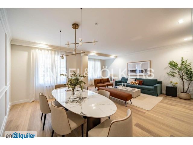 Disponible a partir del 20 de Mayo - Alquiler temporal. Engel & Völkers presenta esta elegante vivienda a estrenar en el prestigioso Barrio de Salamanca, Madrid. Ubicada en una espectacular finca clásica de 1930 con portal recientemente reformado, esta propiedad se sitúa en una segunda planta con ascensor y ofrece una cuidada combinación de estilo, confort y diseño contemporáneo. Se trata de un piso exterior, muy luminoso, que cuenta con tres grandes ventanas a la calle, orientación Sur lo que aporta luz natural durante todo el día y una conexión directa con el entorno urbano más distinguido de Madrid. Con 134 m² construidos, la vivienda ha sido completamente reformada con acabados de alta calidad y se entrega amueblada y decorada, lista para entrar a vivir. Los techos altos de 3 metros potencian la sensación de amplitud y elegancia. La distribución incluye tres dormitorios, todos con baño en suite y un aseo de cortesía. La cocina totalmente equipada con todos los electrodomésticos. Cada rincón ha sido diseñado para ofrecer funcionalidad y estilo en equilibrio. Este piso está ubicado en el barrio de Lista que pertenece al distrito de Salamanca. Este es uno de los barrios madrileños de mayor demanda. Se trata de una zona residencial rodeada de palacetes, embajadas y los mejores restaurantes de Madrid. Se encuentra junto a la zona comercial por excelencia "la Milla de Oro" en la calle Ortega y Gasset a la que llegamos dando un paseo de tan solo unos minutos. Este barrio debe su nombre a D. José de Salamanca y Mayol, Marqués de Salamanca. Este distinguido arquitecto fue quien planificó los espacios concibiendo el barrio de Salamanca como un entramado de preciosas calles paralelas y perpendiculares donde se alojó la burguesía de la época. Actualmente, es una zona residencial con gran demanda entre las élites políticas, financieras y directivos de compañías nacionales e internacionales.
