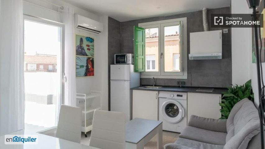 Este encantador apartamento de 1 dormitorio en Puerta del Ángel, Madrid, ofrece un ambiente acogedor y amueblado, perfecto para quienes buscan comodidad y conveniencia. El inmueble cuenta con lavadora, TV y una cocina totalmente equipada. La calefacción funciona mediante aire acondicionado y no se admiten mascotas. Spotahome ha verificado personalmente esta propiedad, garantizando su calidad y fiabilidad para los futuros inquilinos. Puerta del Ángel cuenta con varios puntos de interés cercanos: restaurantes latinoamericanos como La Fogata, cocina peruana en El Secreto de Candy y atracciones turísticas famosas como Viva Carterista, la Puerta de la Avenida de Portugal y el Parque de Caramuel. Sumérgete en este vibrante barrio y descubre todo lo que ofrece.