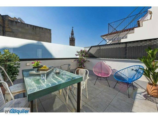 This exclusive duplex apartment combines modern design and comfort across two levels, offering a unique experience to fully enjoy Seville. On the lower floor, accessible from the entrance hall, you?ll find a cozy living room with a dining area and large windows that fill the space with natural light. On this level is the first bedroom with a queen-size bed (160x200 cm) and an en-suite bathroom with a rain shower. The second bedroom has two single beds and a charming vintage desk. The second bathroom, complete with a bathtub and shower, is independent and accessed from the hallway. The modern kitchen, equipped with top-brand appliances and utensils, features a breakfast bar perfect for casual meals. Upstairs, a second living room leads to a charming private terrace with direct views of La Giralda, an ideal spot to relax and enjoy unforgettable evenings. This living room also includes a single sofa bed. Located at the iconic corner of Ángeles and Mateos Gago streets, just steps from the Cathedral and La Giralda, this apartment is set in one of the liveliest and most characteristic areas of Seville?s historic center, inviting you to explore its main attractions on foot year-round. The booking of each (hidden) accommodation includes the offer of extra experiences or activities to improve your experience, which are managed by external providers, who will inform you by e-mail or (hidden), and you can contract or refuse them. For more information about the management of experiences and extra activities of the accommodations, please visit our Privacy Policy on our official website. ** For monthly stays, water and electricity supplies will be included up to a maximum of ? 100 per month. If the expenses are higher, the guest will have to pay the difference. The corresponding invoice will be sent by the accommodation to the guest to verify the expenses** During your stay, the access to the property is limited exclusively to the number of individuals specified at the booking process. Consequently, entry to the property is strictly prohibited for persons not registered as guests. Failure to adhere to this rule will result in an additional charge amounting to 50% of the total cost of the stay as a penalty, or alternatively, immediate expulsion from the accommodation.