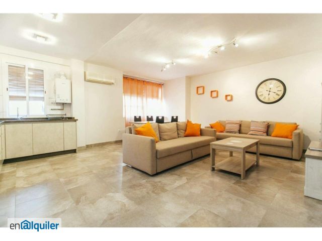 This modern and bright apartment is located in Sevilla. For up to 7 people, here you''ll find everything you may need for an extraordinary stay in the city. Apartment is divided in a living-room, with couch and tv, a dining-room and a fully equiped kitchen. It also has 3 bedrooms, the first one, with a double bed, the second one with 2 individual beds and the third one with a bunk bed. It''s a very warm and cozy space ideal for any kind of stay. In order to guarantee the safety of our guests and respect for the rules of the neighbors community, the apartment has a noise control device installed.